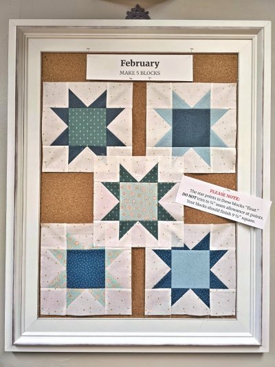 -BONUS! If YOU come in person to the shop during the allotted week each month to pick up your kit AND bring your last month’s blocks to show us your finished monthly assignment as instructed in the pattern, your current month's kit will be FREE! Otherwise, the cost of monthly kits are $7.00 each (incl. tax).