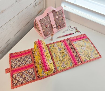 Learn how to make this thoughtfully constructed, versatile quilted case featuring four clear vinyl zipper pockets, allowing you to easily see and access your items. Two slip pockets provide additional storage for quick-grab essentials, while a spacious interior zipper pouch keeps bulky supplies secure and neatly tucked away. It's the newest pattern by Center Street Quilts and Shelley Taylor has all the best tips and tricks for a successful finish.