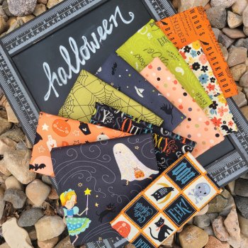 Oh, how I love Halloween. All the costumes, parties, decorations... I'm not too into the gory stuff but give me an old school pumpkin pail, a black cat, some tall witchy boots and a pointed velvet hat... I'm ready for a good 'ole fashioned All Hallow's Eve. Anyone with me? Whether you're ready to dole out the tricks and treats, or not, it's never too early to start sewing up some Halloween fun. In fact if you don't start now, you might miss out on all the ghoulish goodies in store! Our Halloween fabric is flying off the shelves... not in a haunted way... or is it? Where IS it all going? We'd love to see what you're making!