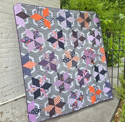 We know you've had your eye on the Eerie collection by Art Gallery Fabrics, but have you seen it sewn up quite like this? Kristy Johnson chose the Vintage Windmill pattern by Krista Moser to show off these fantastic prints! Mix charming color combinations with simple shapes to create a secondary design that is deceptively easy. Use the Creative Grids 60 degree Diamond Mini Ruler to cut diamonds and triangles from strip sets, then arrange your colors to create a one of a kind quilt with no Y seams! Our KIT includes the pattern and fabrics for piecing the 63" x 68" quilt top and binding as shown. Ruler sold separately.