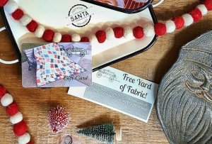 It's become a Christmas tradition... Free yard of fabric coupons are back! Purchase a gift card valued at $50 or more before December 25th and you'll receive a coupon for one free yard of fabric! It's at the top of every quilter's wish list! One coupon per customer, please. Online customers may purchase gift cards from our homepage. If the value is $50 or more, we will email you a unique coupon code for a free yard of fabric! Our gift cards can be used both online, and in-store and they do not expire. Make a quilter smile this Christmas by giving them exactly what they want most.