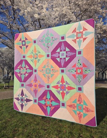 We love the on-point look and all the diagonal angles which give movement and interest to the Compass quilt by Sew Kind of Wonderful. Surprise; it's constructed in rows even though it has the illusion of an on-point setting! Using the Quick Straight Ruler makes cutting bias edges easy, quick, and consistent. Cheryl Wallin has lots of experience with Sew Kind of Wonderful patterns and she's excited to point you in the right direction as you sew together on this quilt-making journey.