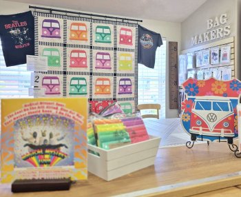 Play our Beatles Bingo game and see if you can match the Beatles song or album to the quilts on display for the chance to win a Corn Wagon gift card! Here are a few highlights from around the shop. Stay tuned on social media through next weekend to see more of what we have in store for the Utah Shop Hop 2025. Watch our stories for Beatles fun facts and updates as we continue to "Ride the Radio Waves."
