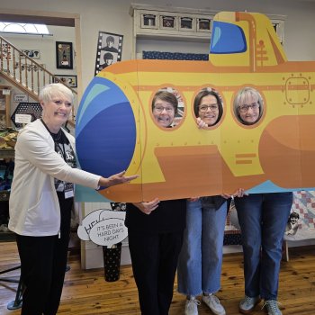 Sewing on a submarine? You bet! Especially if it's of the yellow variety. Stop for a photo op with your quilty gang. You can even add John, Paul, George & Ringo to your pic! Be sure to share and tag us @cornwagonquilts so we can all smile along with you.
