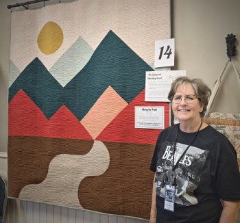 Have you been lucky enough to catch Lynette Christensen singing in the shop? She had the 'Long and Winding Road' in mind when she made the Eastern Sierra quilt by XOX Sew the pattern for this unique design can be purchased from the designer's website here! Doesn't Chelsea Hilton's E2E quilting add just the right touch?