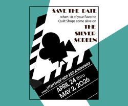 Utah Shop Hop 2026It may seem far away but it will be here before we know it! Mark your calendar and start making your road trip plans. To celebrate 25 years of shop hopping, our theme will be The Silver Screen. Each shop will represent a favorite film. We've already started making quilts and planning all the fun for April 24th through May 2nd, 2026!