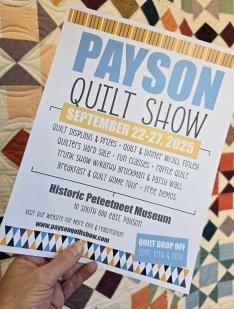 Going on Now thru September 27thLooking for something quilty to do this weekend? Visit the Historic Peteetneet Museum for the annual Payson Quilt Show. It's always a beautiful showcase from talented local quilters. Celebrate quilts of all sizes, styles and skill levels. Inspiration abounds! Visit their website paysonquiltshow.com for all the info including their full event schedule. Hope to see you there!