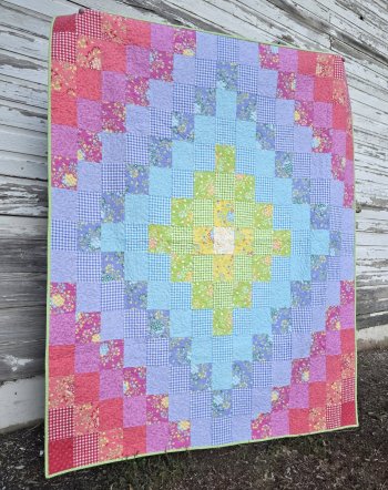 Kristy Johnson put together this rainbow of sunny softness using the Sherbet Sunshine collection. Around Town is a pattern by Cory Yoder that is fast and fun to sew up! This one is sure to be loved by Kristy's new grandbaby but at 60" x 70," this quilt could be a spot of brightness for "kids" of all ages. We have a limited number of kits available!