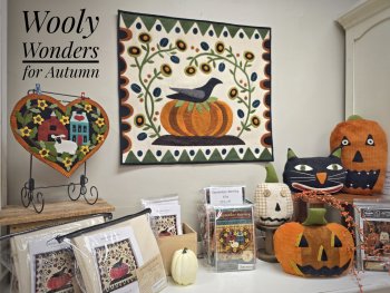 Bone-ita is also crazy about wool -- especially when we're talking about wooly pumpkins, ravens and black cats -- she can really relate. Autumn seems to be everyone's favorite season to sew with wool so we have stocked up on lots of fun new projects for the season! There's still time to stitch up a wooly jack-o-lantern or two before All Hallows Eve arrives.
