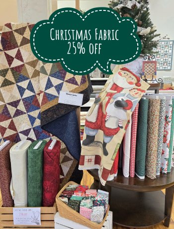 It's going FAST! Our selection of Christmas themed fabrics is now on sale 25% off! That includes 45" wide Christmas cottons, 108" wide backing yardage, fat quarters and precuts while supplies last!